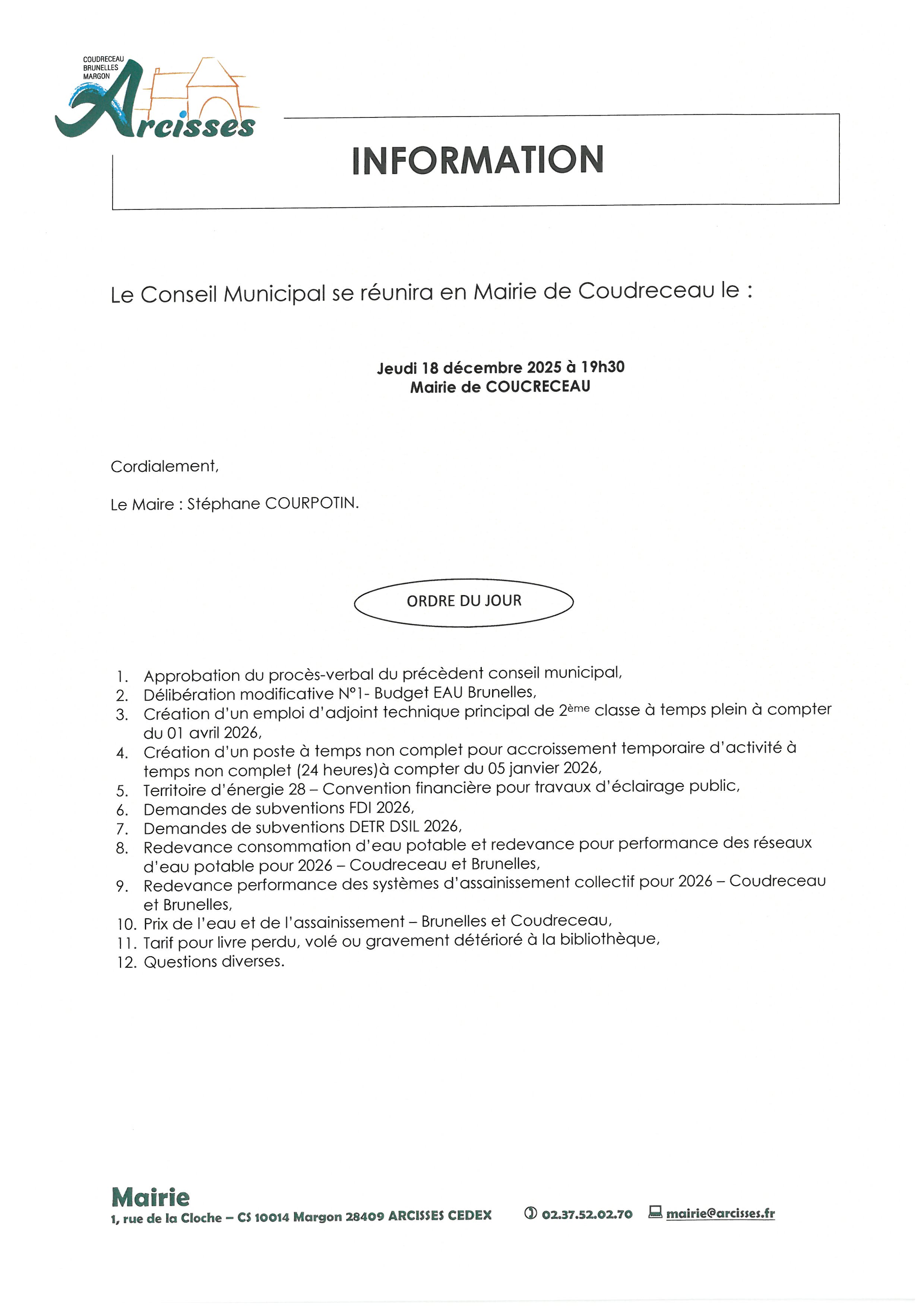 - Ordre du jour du conseil municipal du 20 janvier 2026 (37Ko) publié le 13/01/2026 à 10:05